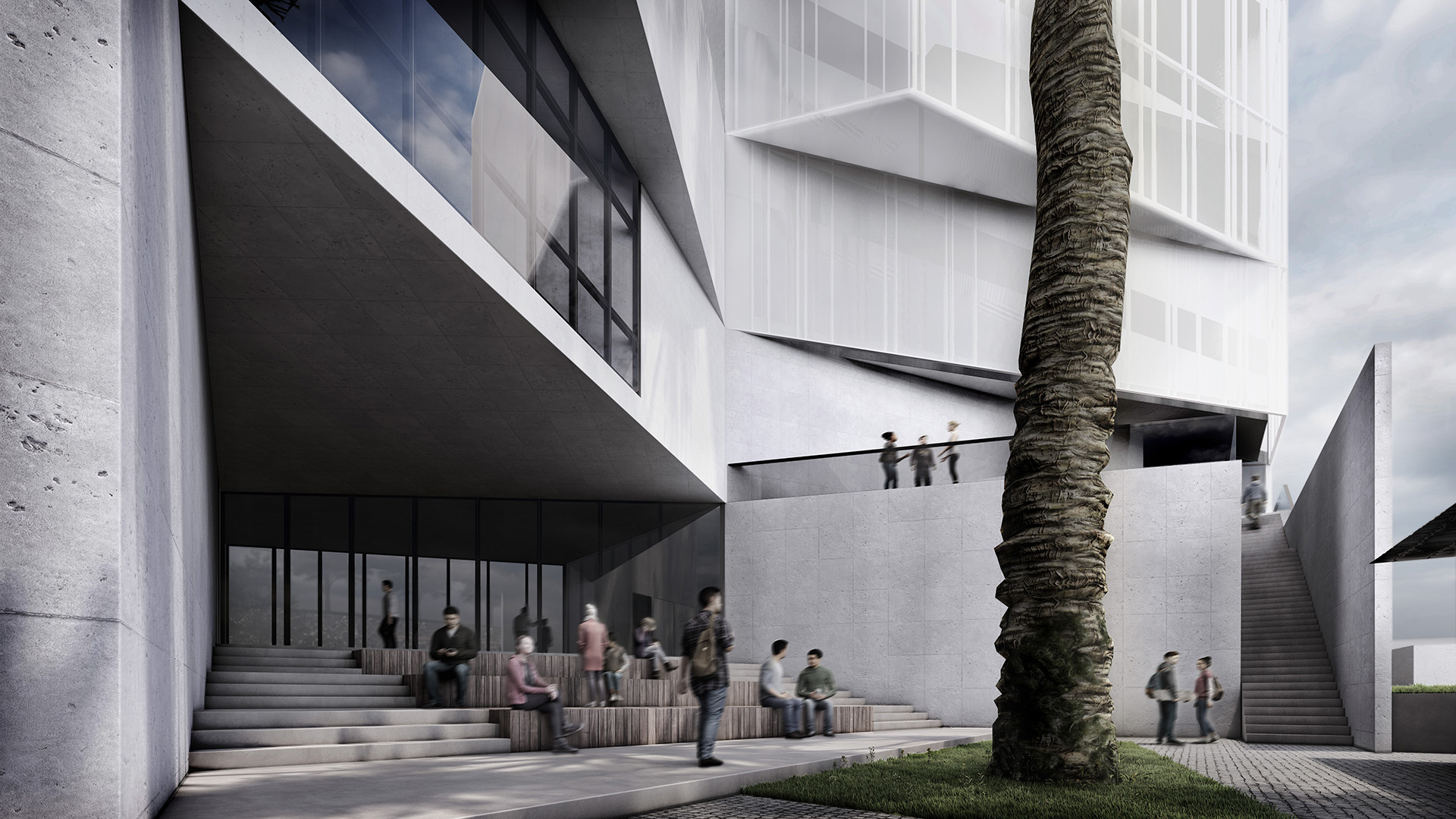 Outra característica marcante desta proposta é o entendimento das questões relativas à acessibilidade e à sustentabilidade sob uma perspectiva mais abrangente. Para além do obrigatório cumprimento do Estatuto da Pessoa com Deficiência, em combinação com as normas de segurança contra incêndio e pânico, pretende-se enxergar a questão pelo prisma da inclusão, do desenho universal e da tolerância ao erro. Não obstante as já conhecidas e naturalmente empregadas soluções de mercado na área de sustentabilidade e eficiência energética – como sistemas de aproveitamento de águas pluviais e de águas de reuso, painéis de captação solar e tantas outras –, esta proposta se concentra em um desenho que permite um desempenho mais eficiente do ponto de vista de consumo energético, por meio de um correto tratamento de aberturas, considerada a orientação das fachadas, em combinação com o largo uso de beirais de sombreamento e de telas metálicas microperfuradas.