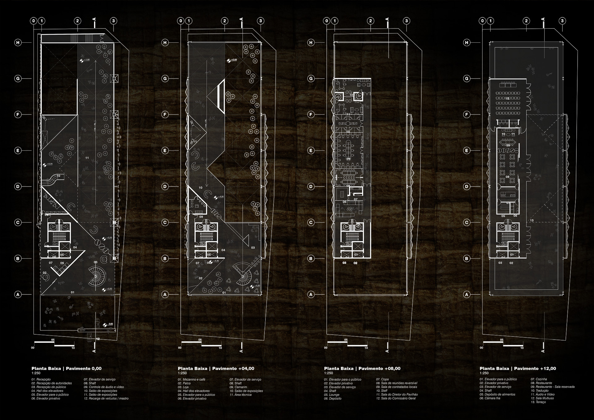 As áreas administrativas, governamentais e corporativas ocupam o terceiro andar, de maneira que mesmo para esse público restrito as telas ainda são visíveis e a experiência, garantida. No quarto andar, a sala de conferências e o restaurante de culinária brasileira dividem espaço com um generoso terraço, de onde se pode apreciar vistas singulares de toda a feira.